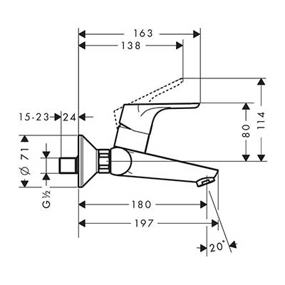 Hansgrohe Focus Care wall-mounted single lever basin mixer with extra long handle projection: 180 mm Hansgrohe helps you transform your bathroom into havens of well-being for an exhilarating start to the day and a relaxing end to it. Bathroom mixers in your own personal style will give you years of p