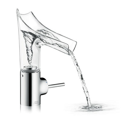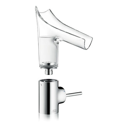 Axor Starck V single lever spout 140 with glass spout with diamond cut with pop-up waste s Transform the bathroom into a place of relaxation and well-being. Axor looks beyond the individual product in order to focus on the entire room: the Axor bathroom mixers create a harmonious bathroom a