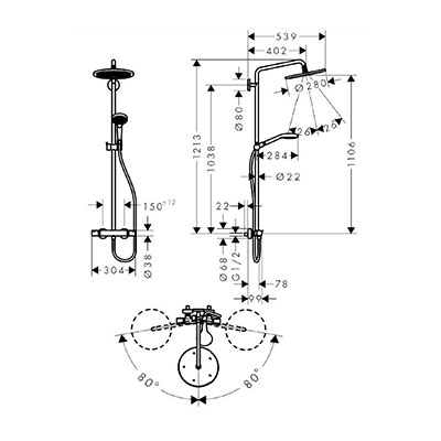 Croma Select 280 Air 1jet EcoSmart Showerpipe - 26794000 The shape of the overhead shower was designed with the contour of the human body in mind - particularly the width of the shoulders. The result: your entire body is pampered by this lush, luxurious sho