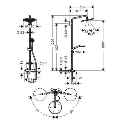 Croma Select 280 Air 1jet EcoSmart Showerpipe - 26794000 The shape of the overhead shower was designed with the contour of the human body in mind - particularly the width of the shoulders. The result: your entire body is pampered by this lush, luxurious sho