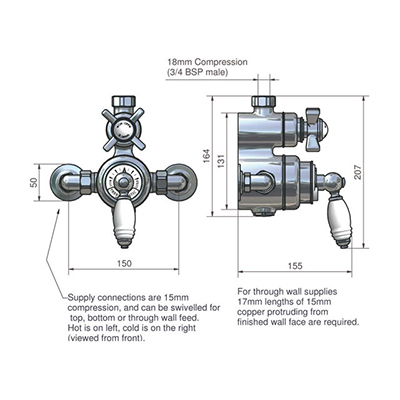 Home > Shower Valves & Fittings > Concealed Shower Pack > Silverdale Traditional Exposed Thermostatic Shower Set |