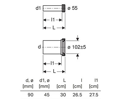 Connecting pipe with coupling sleeve made of PP