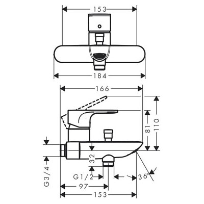 Rebris E Single lever bath and shower mixer Monotrou with 2 flow rates Chrome - 72437000 The design is timeless and can blend in harmoniously anywhere in the bathroom where water is enjoyed. Rebris bathroom taps are reliable and high quality. So you will get a lot of joy out of the produc