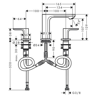 • Consists of: 3-hole basin mixer. waste set