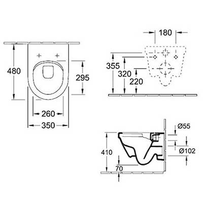 Architectura Wall Mounted 350mm Washdown WC Compact, Rimless - 4687R0 The Architectura bathroom collection by Villeroy & Boch ensures timeless elegance in your bathroom. Use the geometric forms in the collection to create a calming atmosphere. Sanitary porcelain. Also a